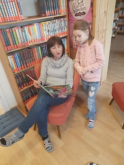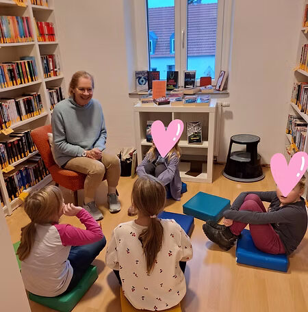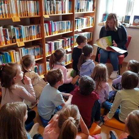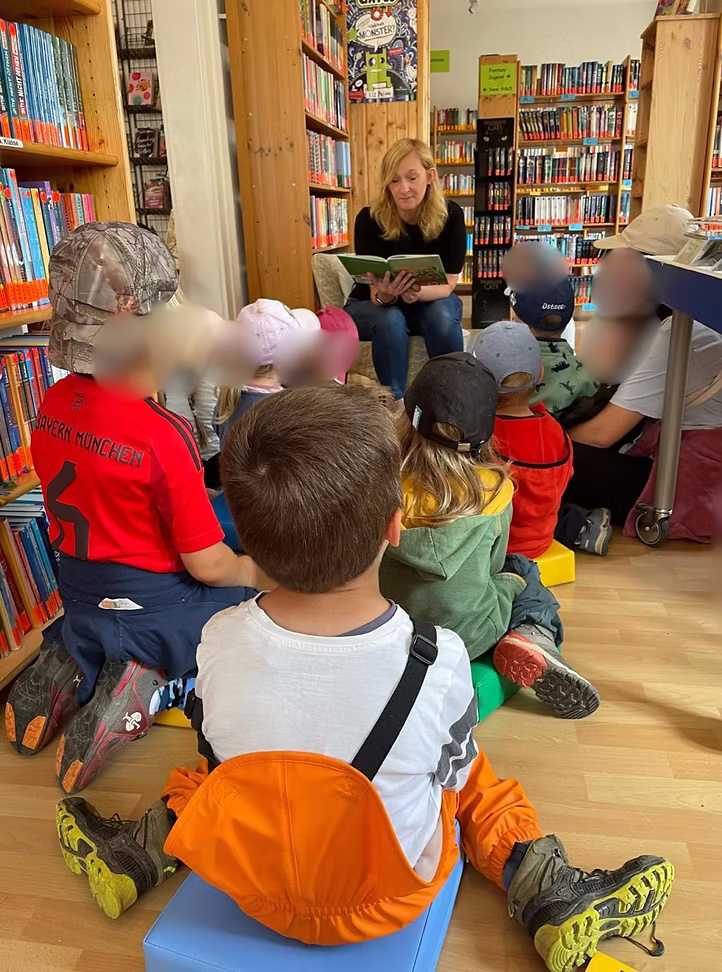 Die Begeisterung war groß! Die Kinder stöberten fleißig in den Regalen und Boxen, dann las Manuela König ihnen vor. Bevor es dann auf den Heimweg ging, wurden noch jede Menge Bücher ausgeliehen.
