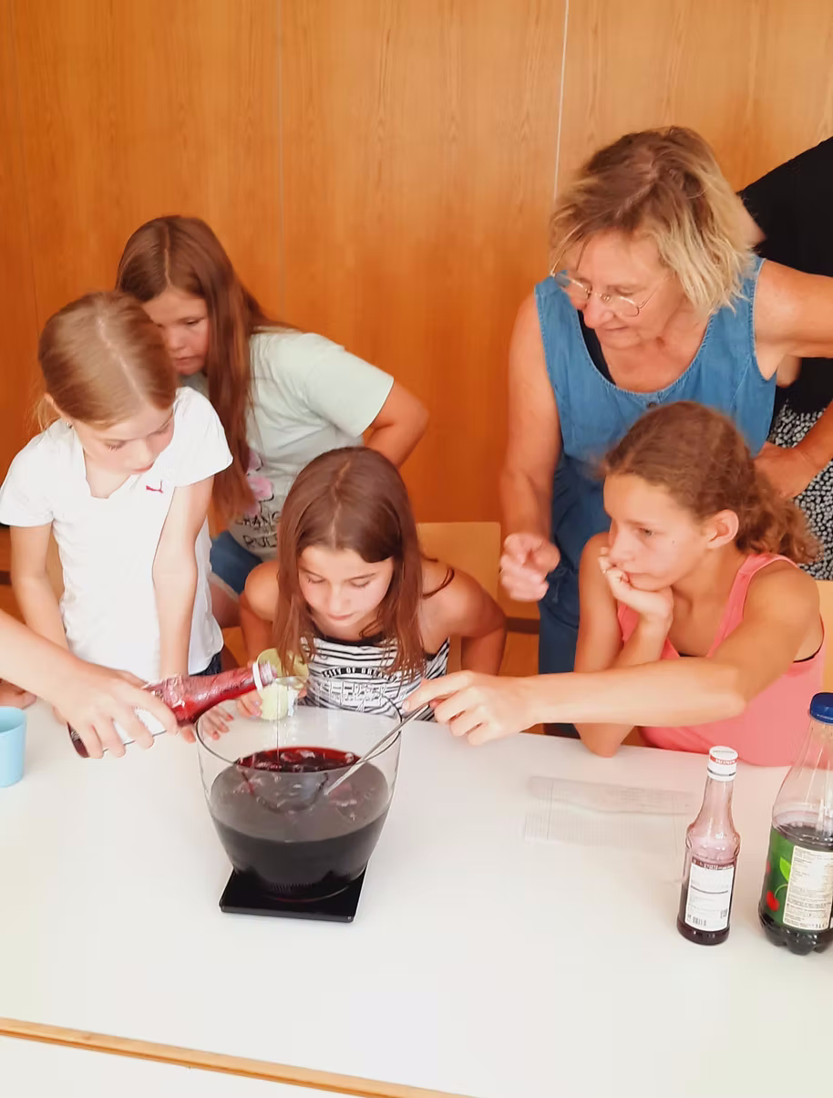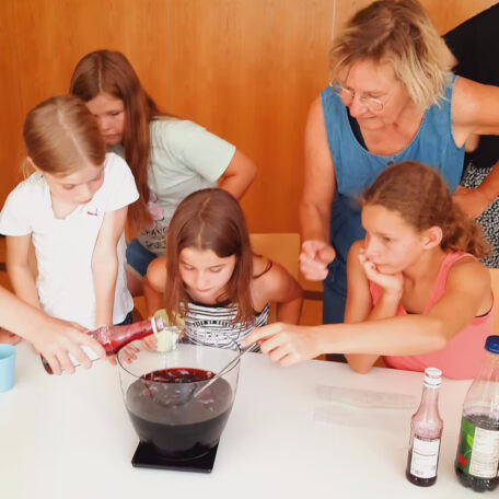 Dennoch lauschten sie konzentriert, wenn aus dem dicken Schmöker „Der Stein der Weisen“ Passagen vorgelesen wurden, die zu verschiedenen Aktivitäten überleiteten: So wurden äußerst kreative eigene Zauberstäbe kreiert, geheimnisvolle Schlüssel mussten aufgespürt und schwierige Rätsel gelöst werden. Besonders spannend war die Entscheidung des „Sprechenden Hutes“, in welches der vier Häuser die Kinder eingeteilt wurden. Natürlich waren als Abschluss Zaubertränke zu mischen, roter Blutsaft und Vielsafttrank schmeckten den Kindern gut – leider ohne magische Wirkung.