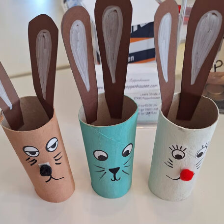 Vor dem Start in die Osterferien lud das Team der Familienbücherei am 10. April seine jungen Fans zu einer Osteraktion ein. 18 Kinder nahmen das Angebot gerne an und kamen am Nachmittag in die Bücherei. Karin Schmitt und Sonja Haas lasen dort zunächst Geschichten zum Thema vor. Danach konnten die jungen Besucherinnen und Besucher unter Anleitung von Manuela König und Lena Eckert lustige Osterhasen basteln und Anhänger zum Thema malerisch gestalten. Im Nu war die Zeit um, und die Eltern standen zu Abholung vor der Tür!