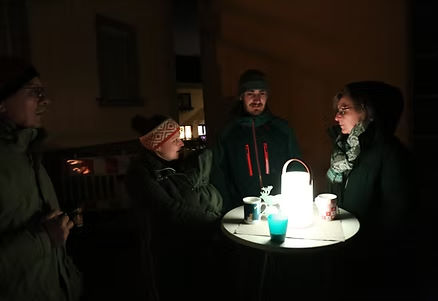 Neben Glühwein und Plätzchen gab es eine humorige weihnachtliche Geschichte, die Karin unter stimmungsvoller Taschenlampenbeleuchtung vortrug.