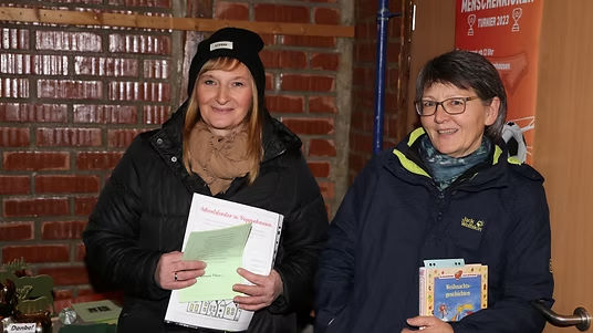 Unter das Publikum hatte sich auch eine Abordnung der Poppenhäuser Landfrauen gemischt, die dem Büchereiteam als vorgezogenes Weihnachts-geschenk eine Spende von 300 Euro mitbrachten. Die Summe hatte die Frauen durch den Verkauf selbst gebackener Weihnachtsplätzchen erzielt.