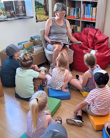 Am 17.07 machte sich die Wiesengruppe des Montessori Kinderhaus aus Maibach auf den Weg zu uns in die Bücherei.