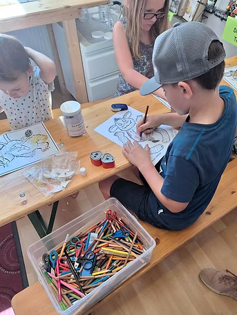 Danach dürften die kleine Gäste dazu malen und basteln und konnten so das Gehörte verarbeiten. Und ehe sich die Kinder richtig umsahen, standen die Eltern schon wieder zu Abholung an der Tür!