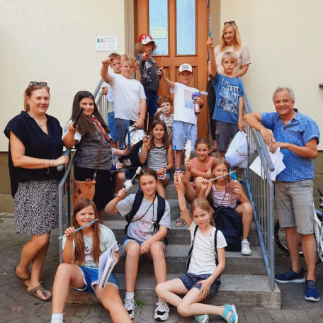 Am Schluss trafen sich die Zauberschüler noch auf der Treppe, um gemeinsam die magischen Kräfte ihrer handgefertigten Zauberstäbe zu erproben. Welche Wünsche dabei in Erfüllung gingen, blieb geheim – vielleicht der, auch im nächsten Jahr wieder in der Familienbücherei ein aufregendes Abenteuer zu erleben.